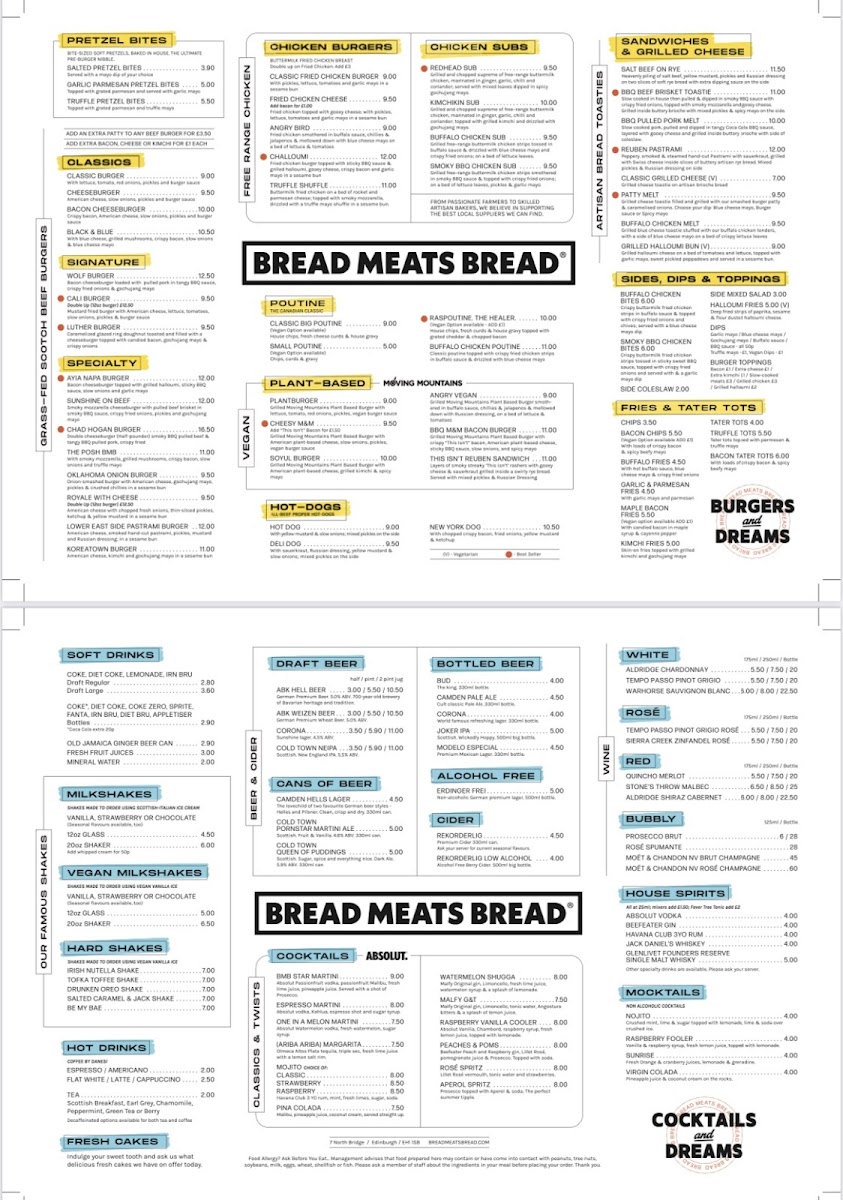 As a dedicated foodie and frequent visitor of burger joints across the UK, I can confidently say that the Bread Meats Bread Menu at their Edinburgh North Bridge location is an absolute standout. Situated in a prime spot near the Royal Mile, this bustling eatery offers more than just casual dining - it delivers a memorable experience built around bold flavours, quality ingredients, and a vibrant atmosphere.